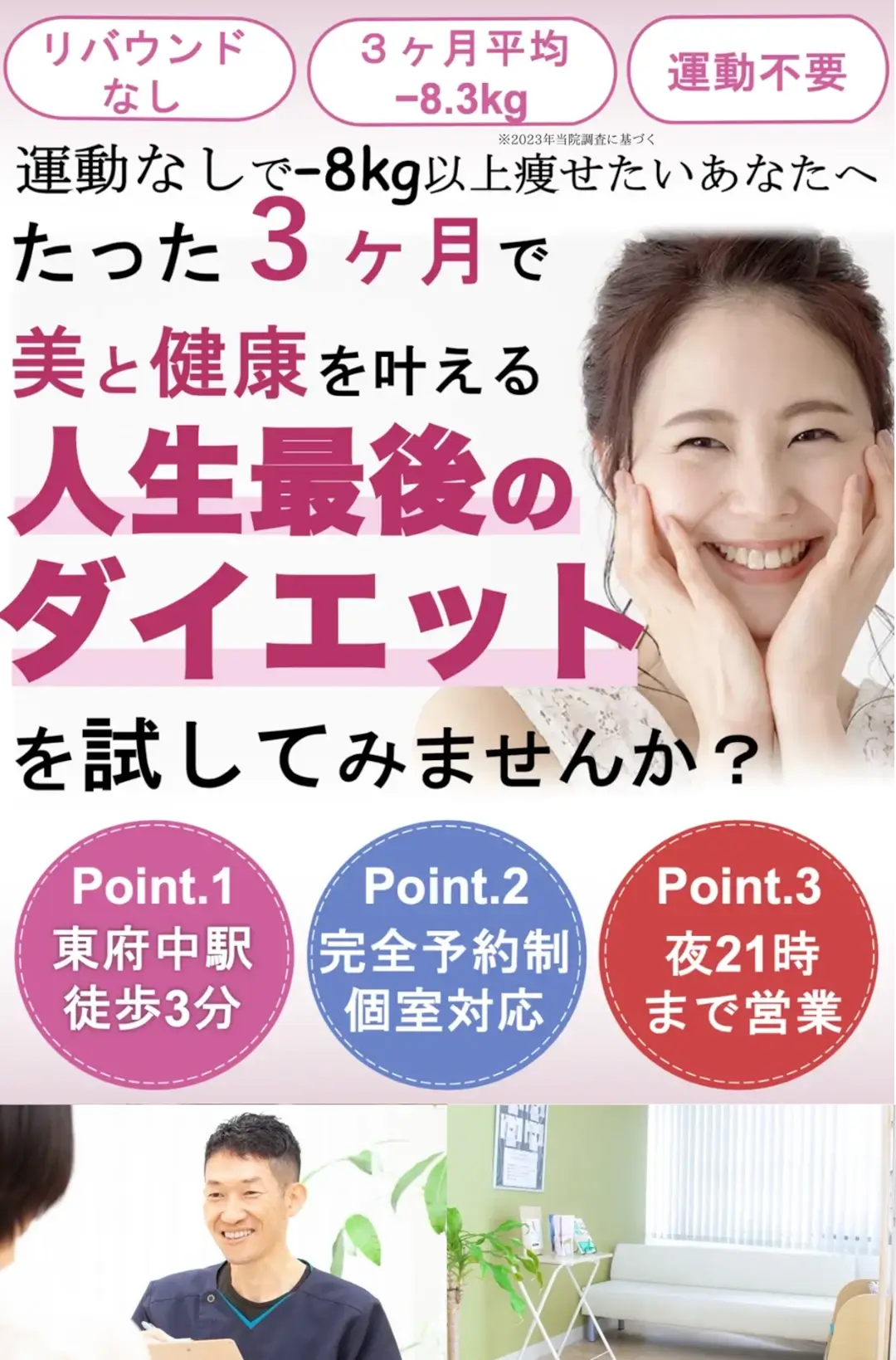当院の人生最後のダイエットコースを「ぜひやってみたい!」思っていただいた方のみのご案内となりますので、お気軽にお越しください。